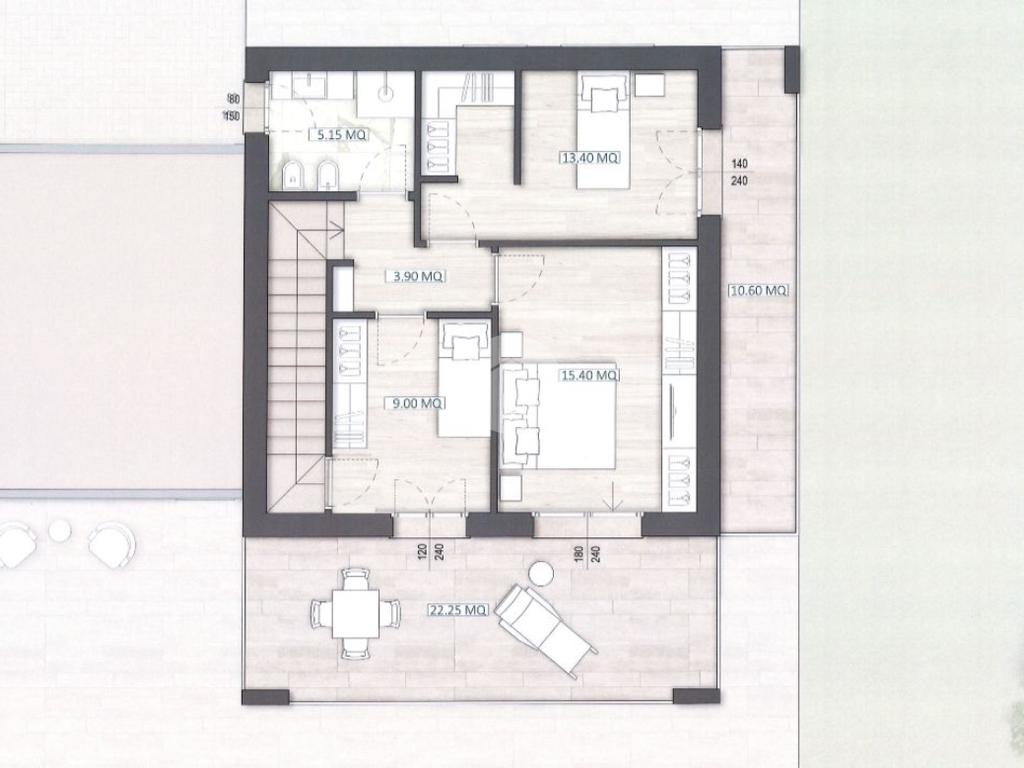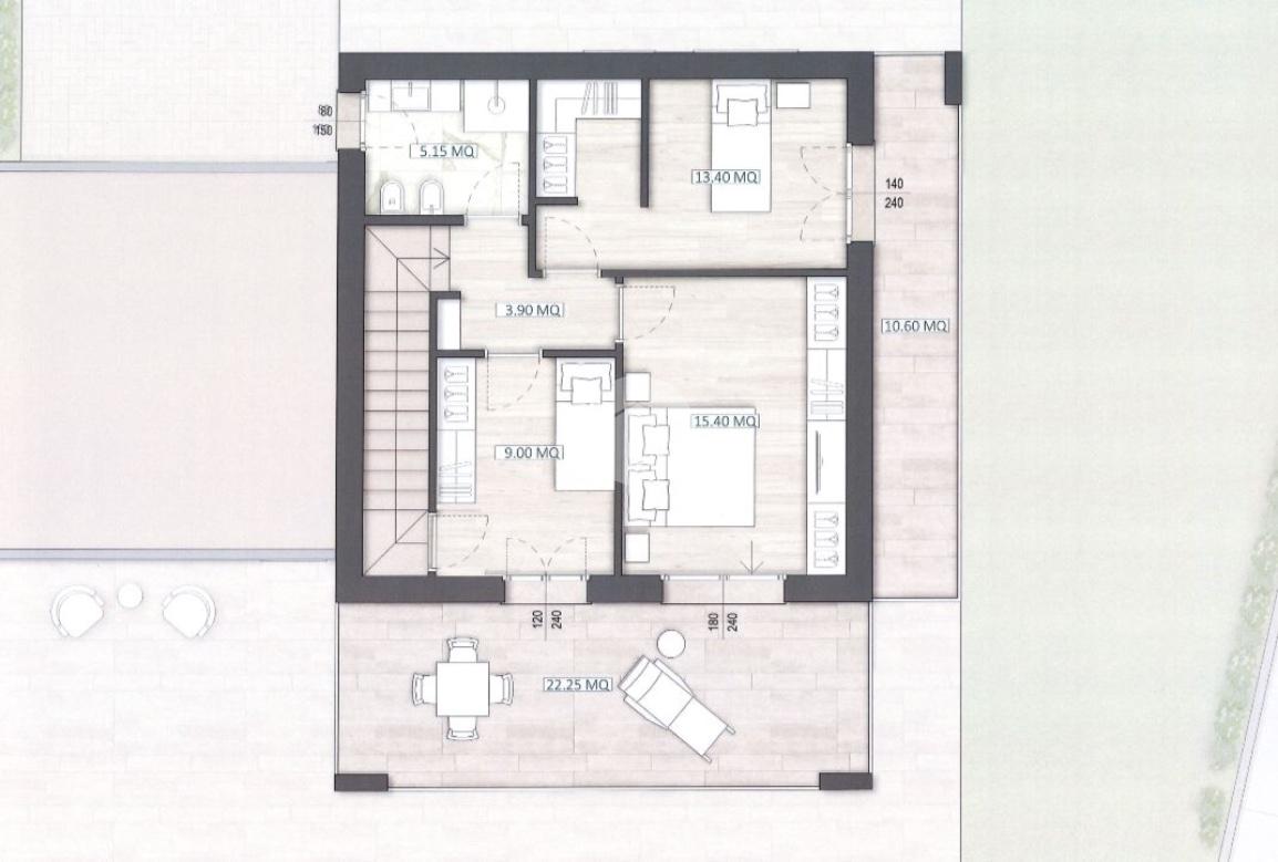 La zona giorno è pensata come uno spazio accogliente e rappresentativo, ideale sia per la vita quotidiana sia per ricevere ospiti, mentre la zona notte offre privacy e tranquillità, con ambienti facilmente personalizzabili in base alle esigenze dell’acquirente. A completare la proprietà, un giardino privato che consente di vivere appieno gli spazi esterni, con la possibilità di realizzare una piscina privata per un’esperienza abitativa esclusiva.