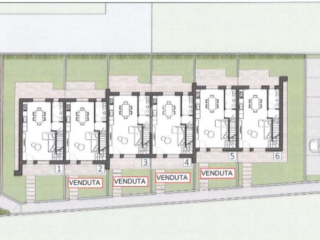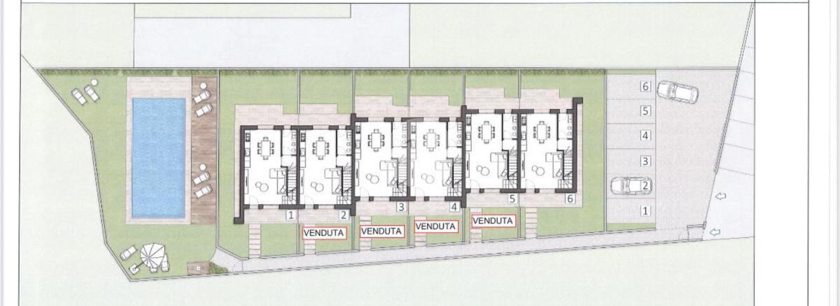 Il progetto comprende sei villette a schiera, una bifamiliare e due ville singole, inserite in un’area con spazi comuni ben organizzati e piscina condominiale.