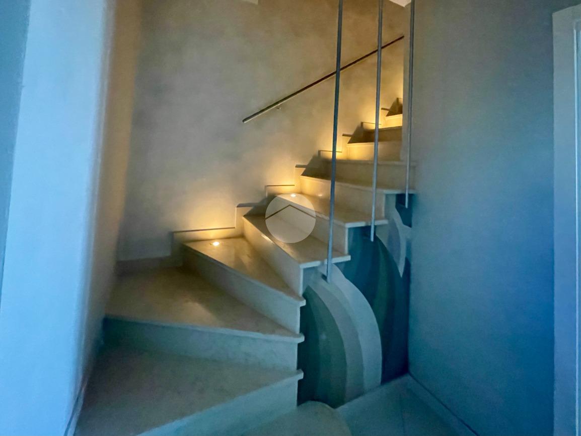 Attraverso una scenografica scala in marmo saliamo al piano primo, dove troviamo la zona notte composta da una master room con bagno privato, vasca idromassaggio ed accesso ad una grande loggia coperta che regala una bellissima vista lago; una camera doppia con acceso ad un secondo terrazzo anch'esso con splendida vista lago; una camera singola e un bagno completo di doccia.